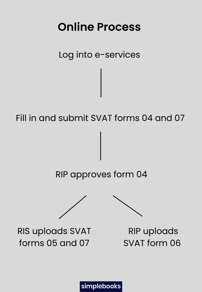 - The RIS issues an SVAT form 02 (also called an SVAT invoice) (to the RIP) + submits a SVAT form 04 to RAMIS