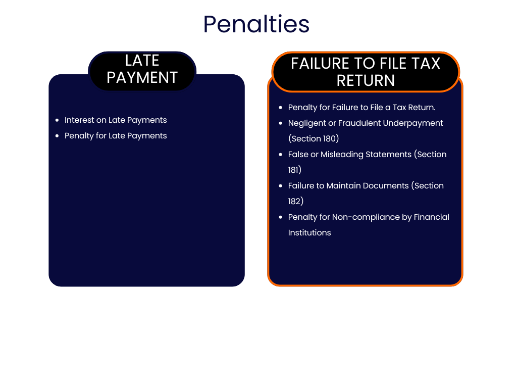 - Penalty for Failure to File a Tax Return: If you fail to file a return by the 30th of November 2025, it will result in a penalty equal to the greater of;